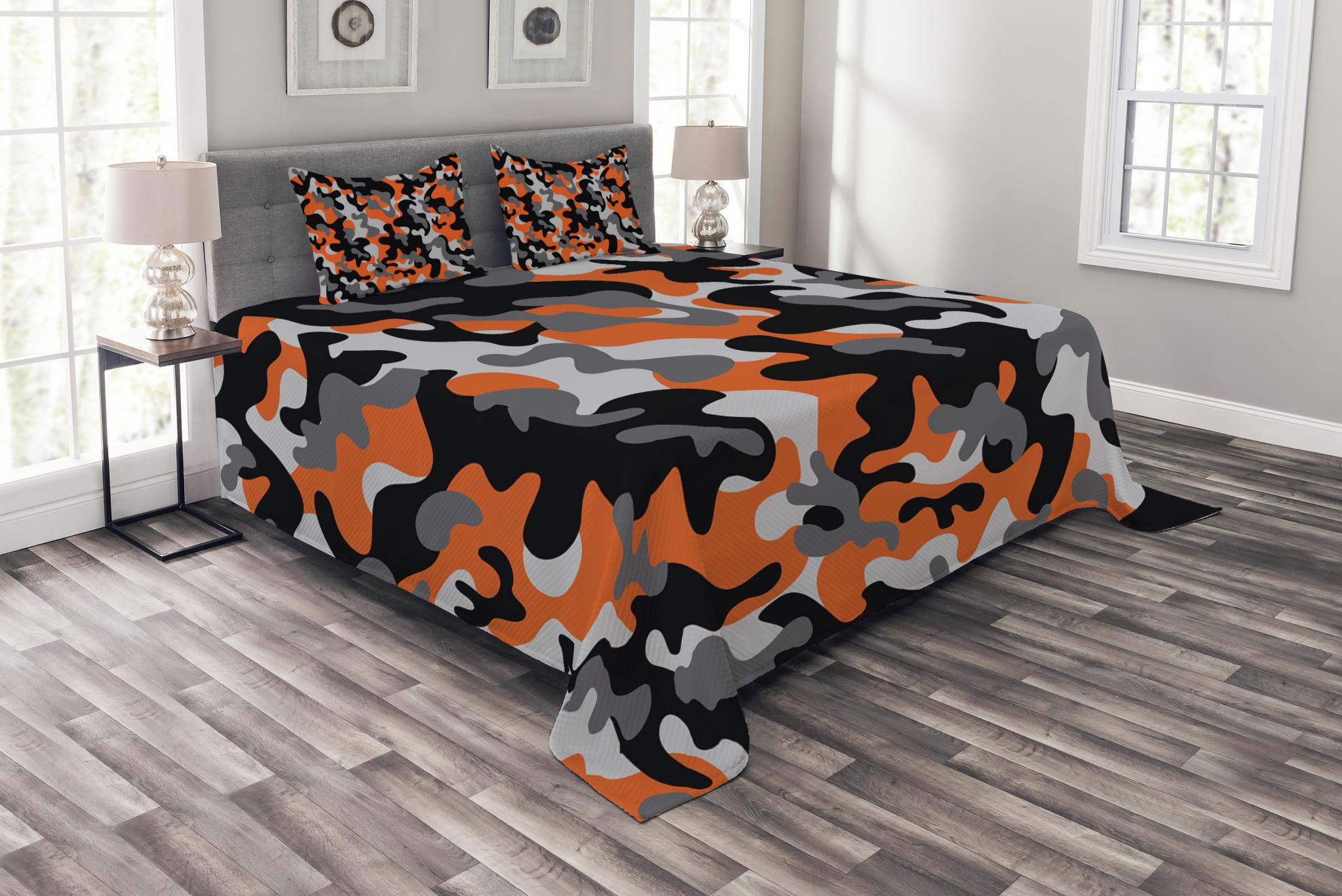 Orange Camo Comforter: The ap blaze orange camouflage valance will brighten your traditional woodland motif and add a hint of contemporary styling to your rustic decor.